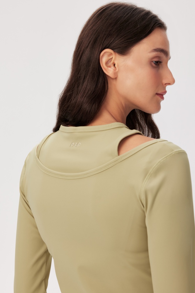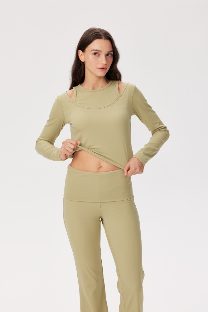 A fashion-forward layered top designed for versatile athleisure styling, pairing with Gina Capri Legging or Gina Flared Legging for a coordinated look.