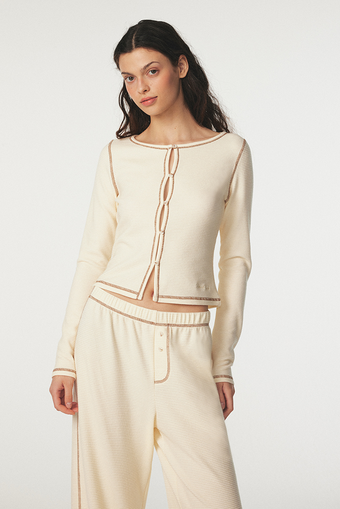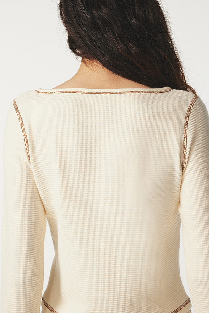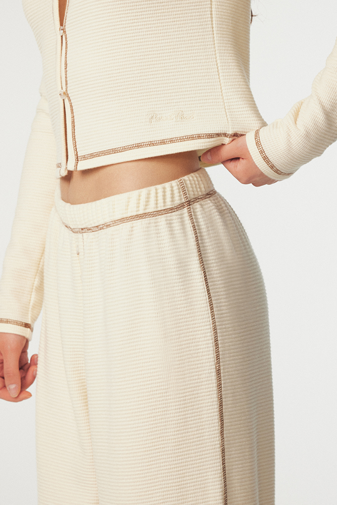 The Lottie Waffle Button Top: Elevate your everyday basics with this this lounge essential Pair with lottie waffle trouser.