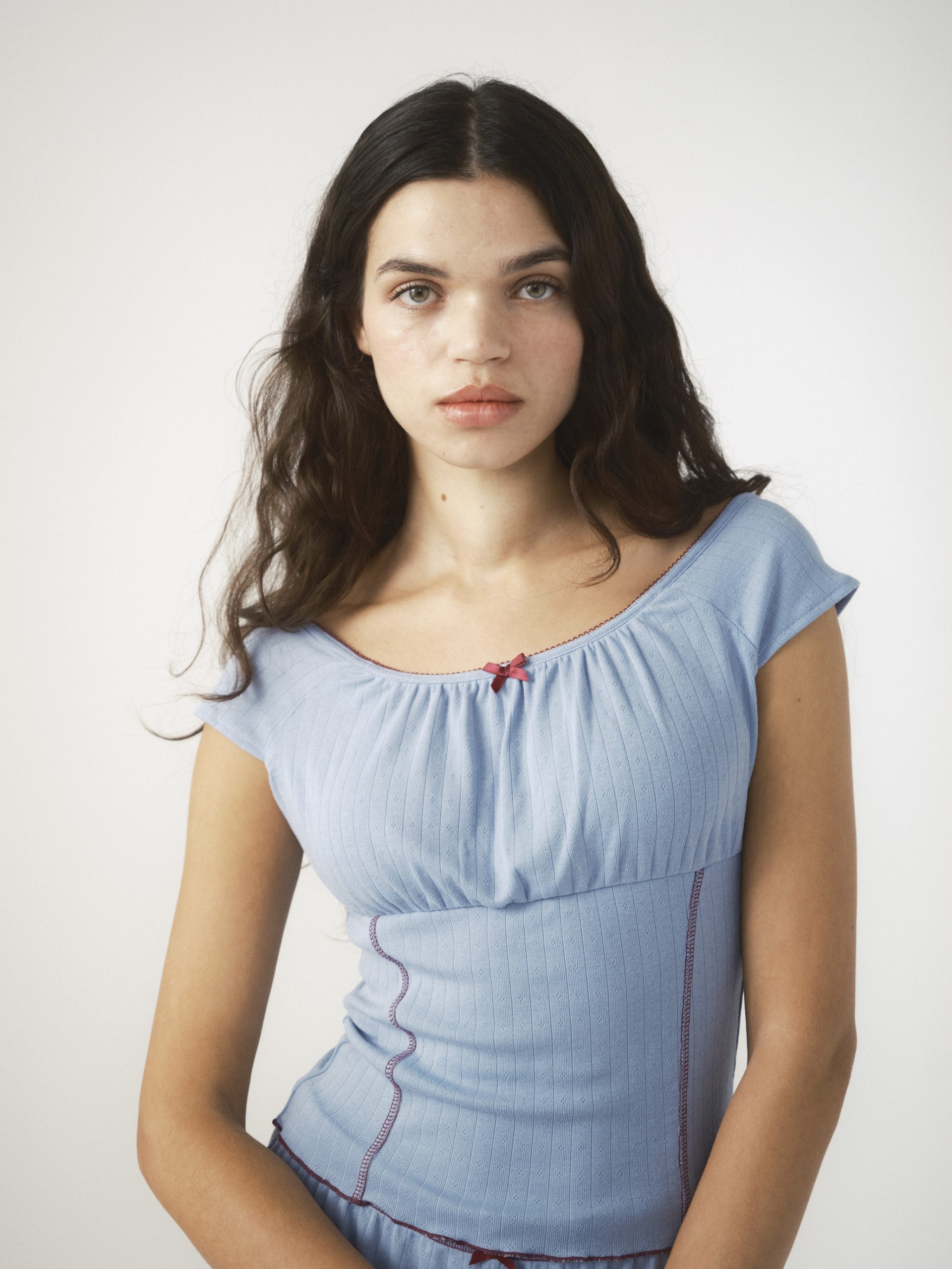 PIXIE & PEACH Drew Pointelle Bardot Lounge Top